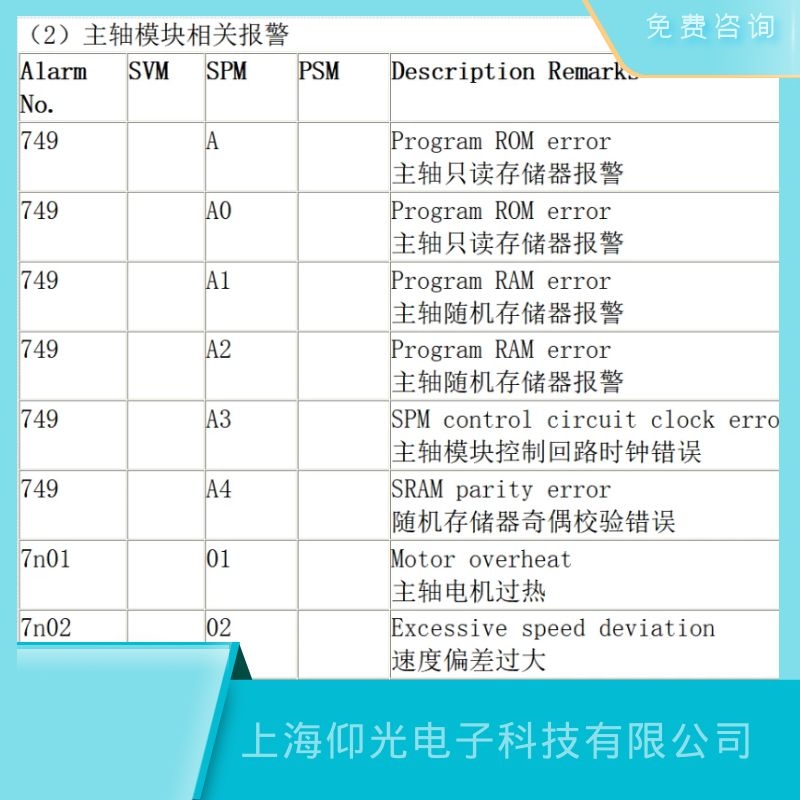 查位置編碼器的皮帶是否松或斷開。3. 如果顯示正常,更換主軸模塊控制側板。